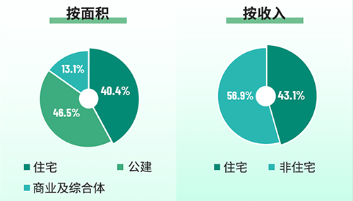 规模扩张、多元发展是当下物企破圈前行的核心竞争力。2020年,雅生活集团通过获取股东优质项目、第三方市场拓展等内生增长模式,协同资本驱动外延增长,助力集团规模强势增长,业态布局均衡,进一步深化了全业态、全产业链布局。按在管面积划分,住宅40.4%,公建46.5%,商业及综合体13.1%。按收入划分,住宅43.1%,非住宅56.9%。在合约面积中,第三方项目占比提升至74.1%。