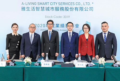 3月22日下午,雅生活集团在线上召开2020年度业绩发布会。雅生活集团董事会联席主席黄奉潮先生、总裁李大龙先生、副总裁兼物业服务公司总裁冯欣先生、副总裁赵昱女士、副总裁刘闻皓先生及首席财务官邬洁颖女士出席发布会。