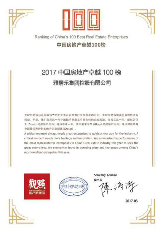 登上中国房地产卓越100的光荣榜,成为行业典范与榜样!
