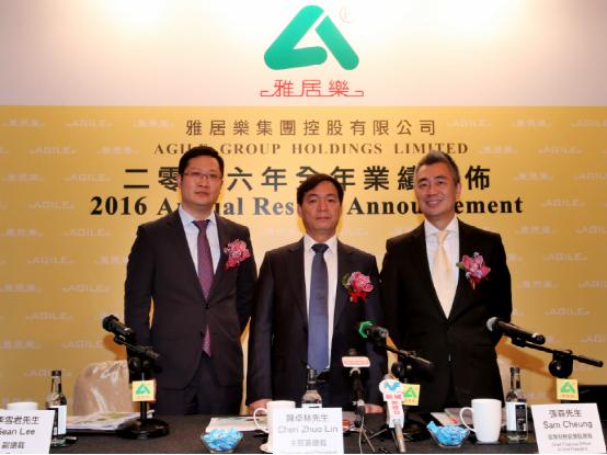 集团控股有限公司2016年业绩发布会在香港举行,集团主席兼总裁陈卓林,首席财务官、副总裁张森以及集团副总裁李雪君出席现场。